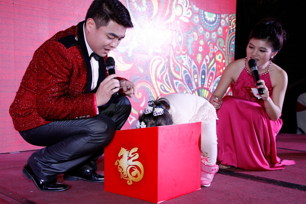 联欢会中最让人感动的部分来自于员工家属的两部视频短片——《童言无忌》与《我想对你说》,很多员工在观看这两部短片时留下了感激的泪水。新之航传媒集团董事长鞠航将员工家属代表请到了台上,向他们表示了由衷的感谢与祝福,并送上了礼品。感谢家属们长久以来的支持与理解,并祝福员工家属们能够身体健康,心想事成。而可爱的小家属们则积极参与到节目当中,综合部主任李峰的女儿李沁涵用现场作画的方式作为题面,请员工们猜画中的成语,影视公司巩大鹏的女儿刘书含则抽出了全场一等奖的获奖者……