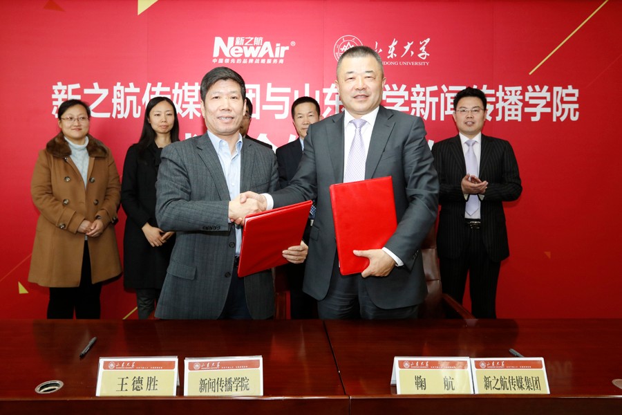 新之航传媒集团作为广告传媒界领军企业,与山东大学新闻传播学院和广告研究中心等机构深度合作,双方各自发挥客户服务实战优势和学术研究优势,新之航传媒集团的品牌战略总监将到山东大学讲授实战案例,并为山东大学研究生和本科生提供实习和就业机会。山东大学教授将与新之航传媒集团创意策划师一起研讨客户品牌价值倍增提升方法,共同主办国内、国际品牌战略营销学术会议和论坛,打造一个产学研三位一体的品牌战略合作新模式。