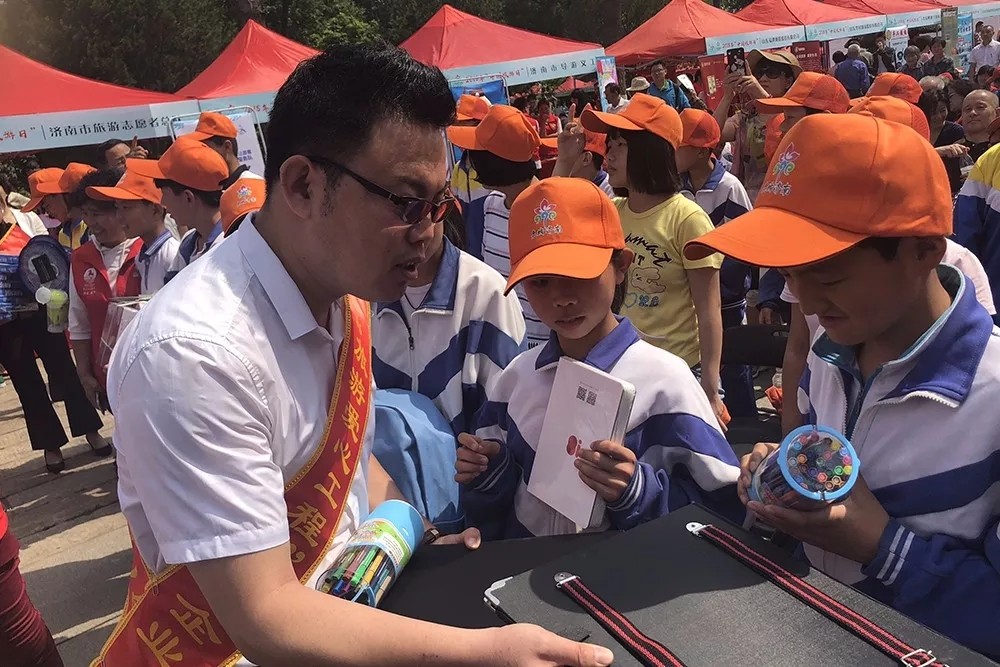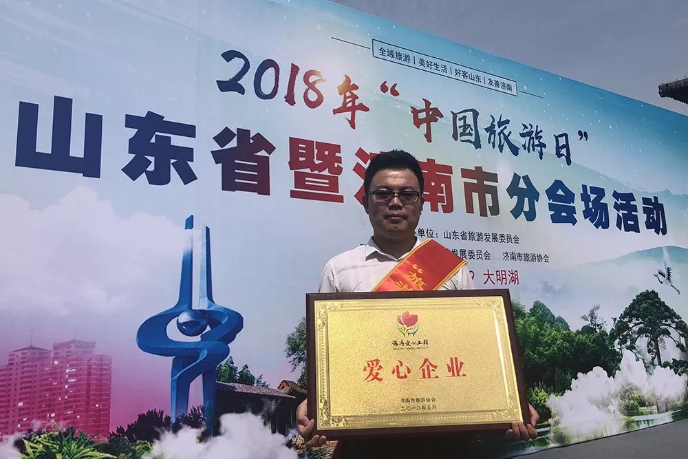 2018“中国旅游日”山东省暨济南市分会场活动由山东省旅游发展委员会、济南市旅游发展委员会、济南市旅游协会联合举办。启动仪式现场,为了进一步倡导公益旅游、爱心旅游,济南市副市长孙斌向为旅游爱心团队捐赠旅游、学习用品的新之航传媒集团有限公司等13家爱心企业颁发奖牌。