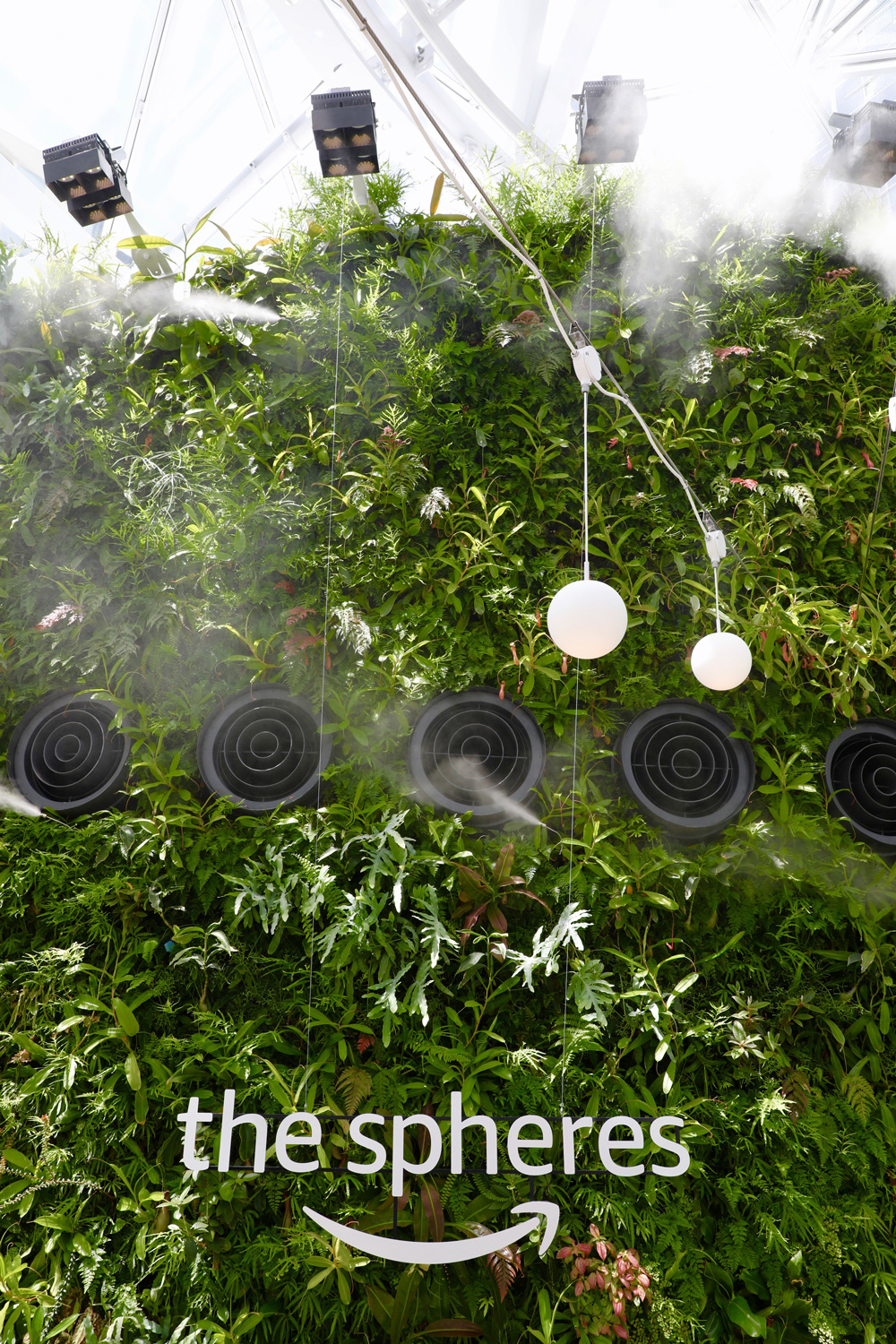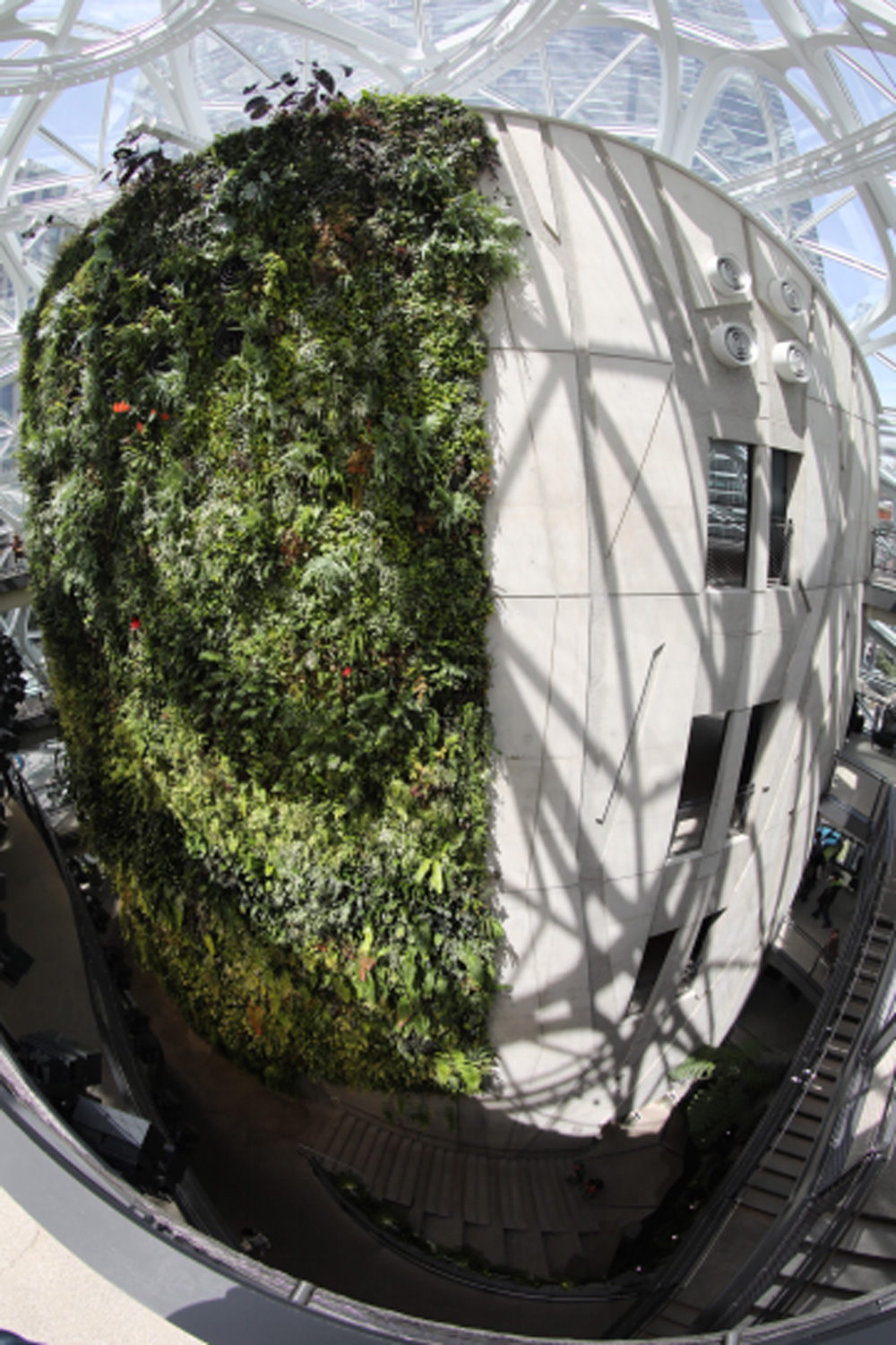内部四层建筑群拥有60英尺高的绿色墙壁植物景观