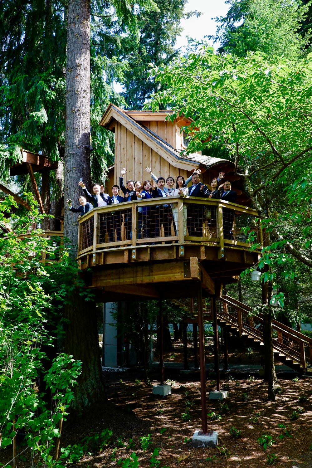 新之航考察团与微软营销亚洲区域高管团队在“微软树屋”召开小型会议