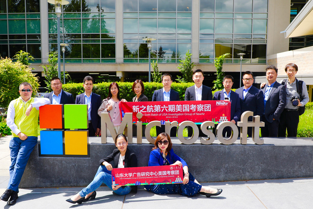 On May 29th, the Newair Media Group 6th American investigation group and Advertising Research Center of Shandong University American investigation group consisting of 13 members, led by Ju Hang, chairman of Newair Media Group, went to Intellectual Ventures, Amazon, Microsoft to look in depth of global scientific and technological research and development, prediction and application, intellectual property protection, e-commerce economic development, human resource construction, creative design of indoor and outdoor office space.