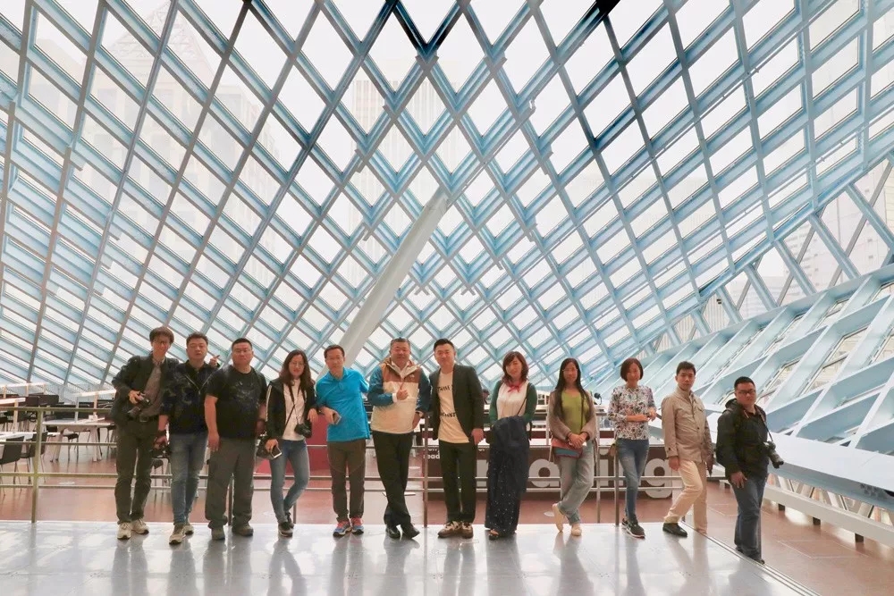 On May 29th, the Newair Media Group 6th American investigation group and Advertising Research Center of Shandong University American investigation group consisting of 13 members, led by Ju Hang, chairman of Newair Media Group, went to the Seattle Public Library,Frye Art Museum, Chihuly Garden and Glass and Museum of Pop Culture.