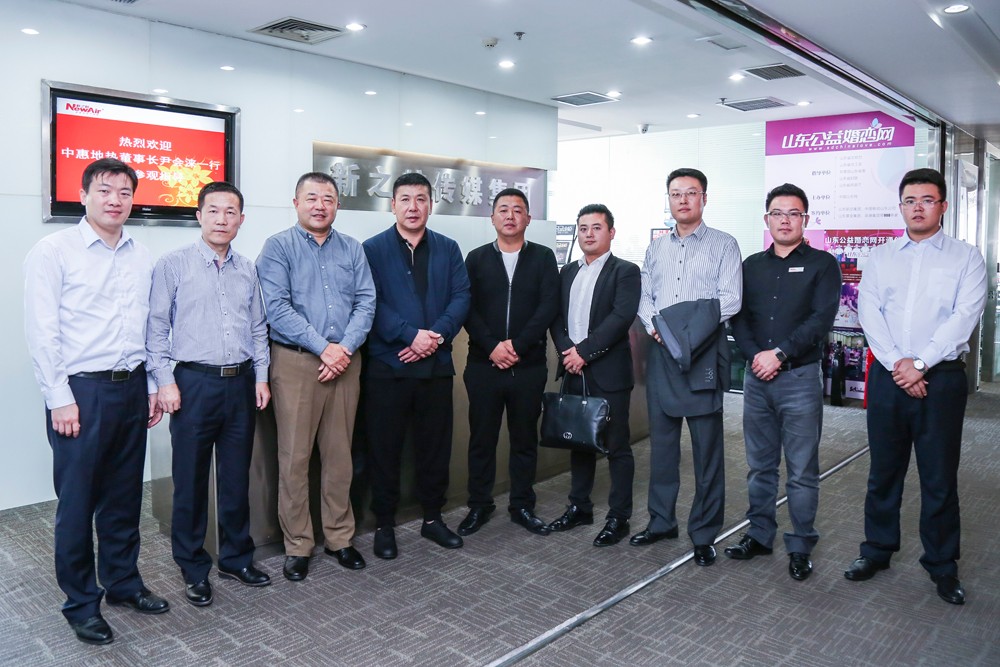 2016年10月14日,中惠地热董事长尹会涞一行赴山东新之航传媒集团考察调研,新之航传媒集团董事长鞠航,总经理于涛陪同参观。