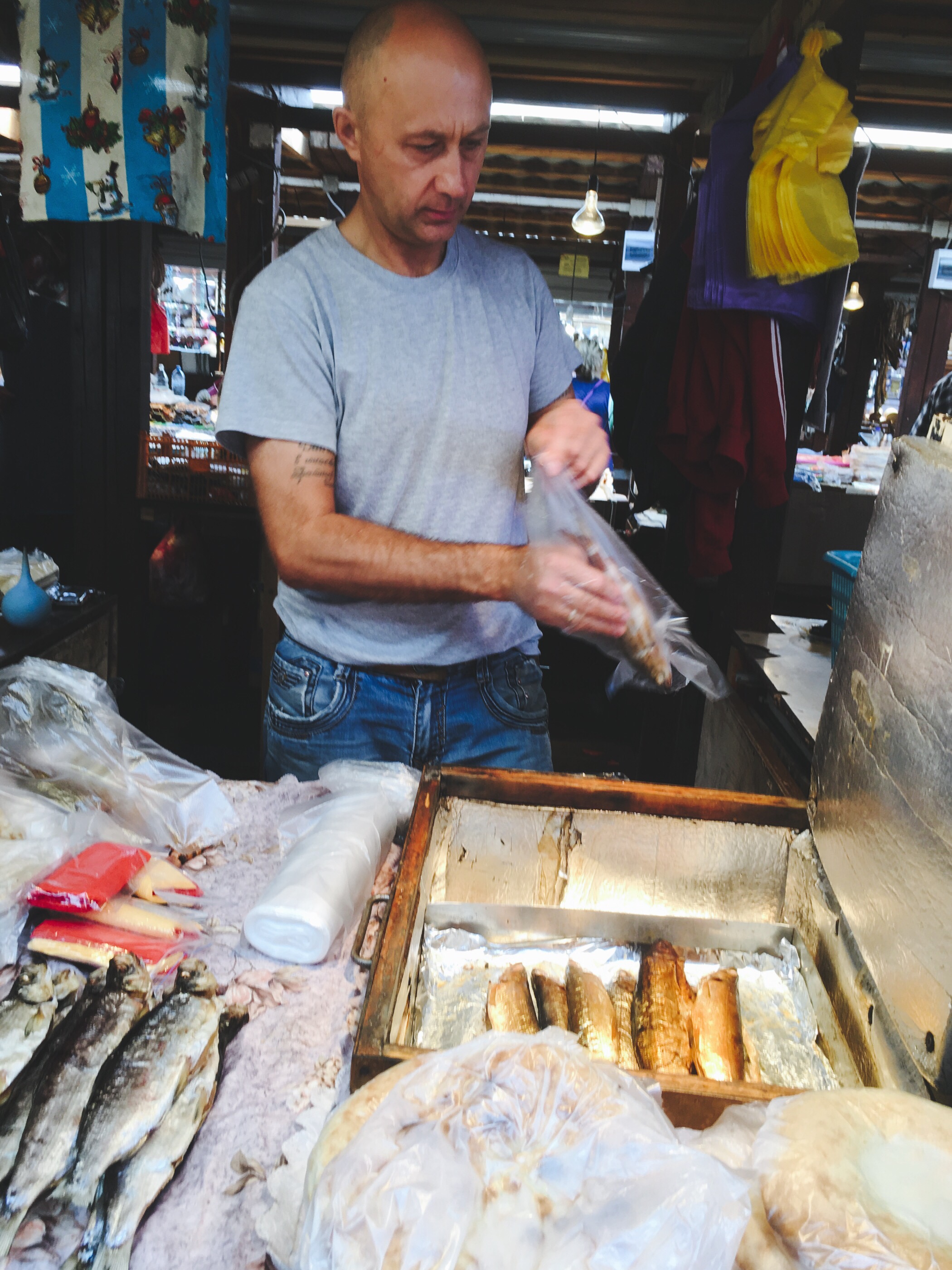 在小镇鱼市场,我们一起品尝了贝加尔湖特产秋白鲑鱼和奥姆里熏鱼。以当地特色熏制手法做成的秋白鲑鱼生长在冷水中,生长期长,肉质松软,吃惯海鱼的青岛公司小伙伴也赞不绝口。